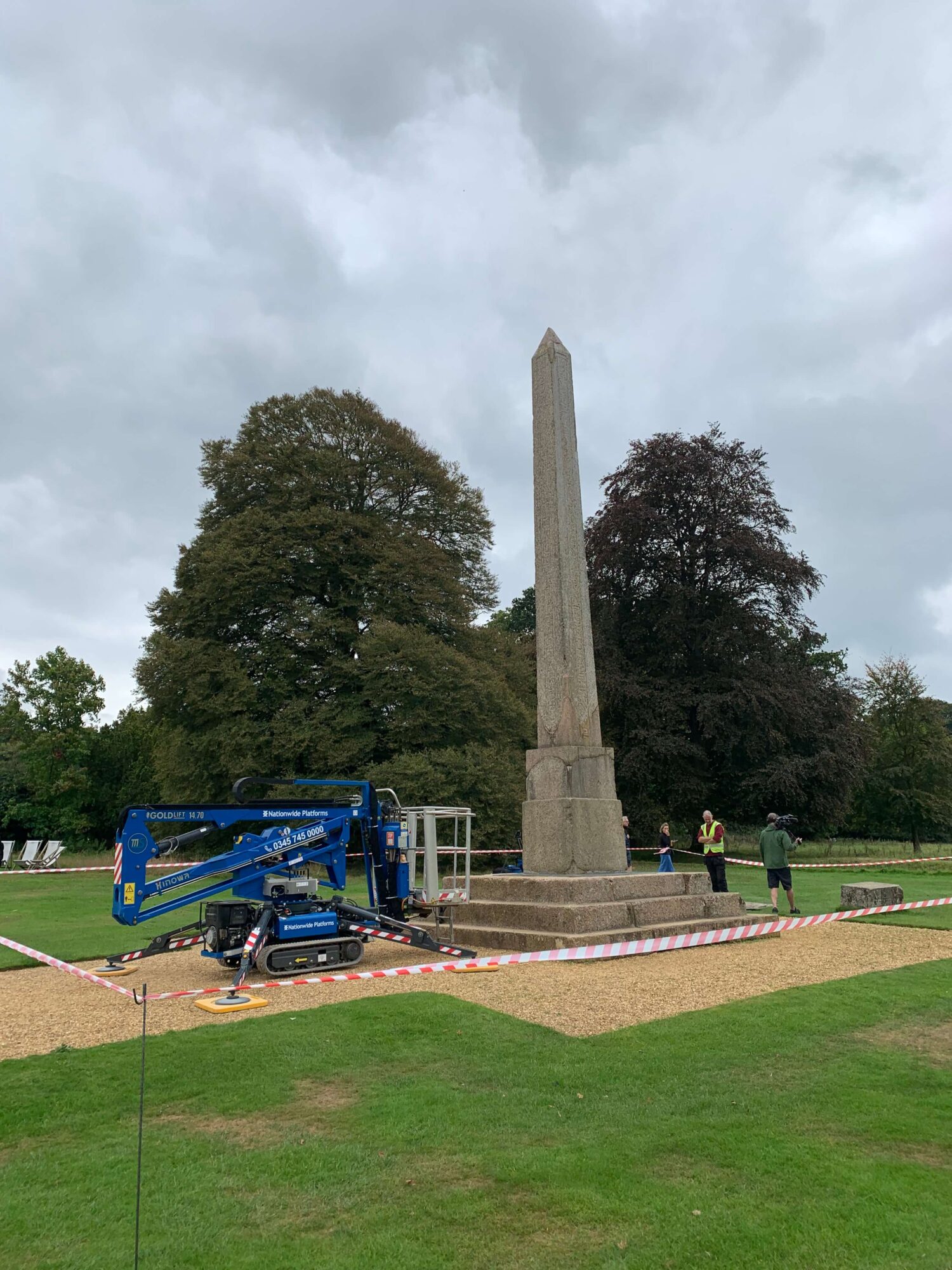 Cliveden Conservation working on The Philae obelisk at Kingston Lacy.